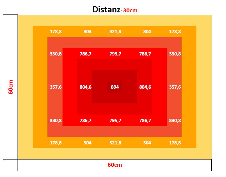 | 100 × 100 cm | 250 W | CANDY 250W oder CASSY 250W | Perfekte Wahl für größere Flächen. Sorgt für intensive und gleichmäßige Lichtverteilung. |